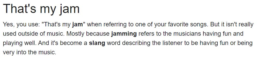 "That's my jam" 은 당신의 최애곡 중 하나를 나타낸다.